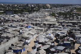 Displaced Palestinians walks through a tent camp in Muwasi, an area that Israel has designated as a safe zone, in Khan Younis southern Gaza Strip, Wednesday, Sept. 10, 2025. (AP Photo/Jehad Alshrafi)