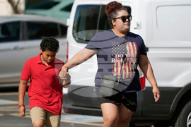 Damian Pecci, 8, of Scottsdale, Ariz., attends a Catholic rosary prayer vigil with his family and others for Charlie Kirk after he was shot and killed during a Utah college event Wednesday, Sept. 10, 2025, in Scottsdale, Ariz. (AP Photo/Ross D. Franklin)