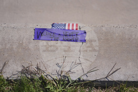 A note is left behind outside campus a day after the shooting of Charlie Kirk at Utah Valley University in Orem, Utah, Thursday, Sept. 11, 2025. (AP Photo/Lindsey Wasson)