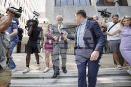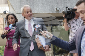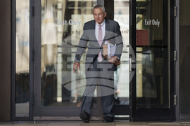 Eddie Castaing, Jr., the attorney for New Orleans Mayor LaToya Cantrell, leaves federal court after her arraignment in New Orleans, Wednesday, Sept. 10, 2025, (AP Photo/Matthew Hinton)