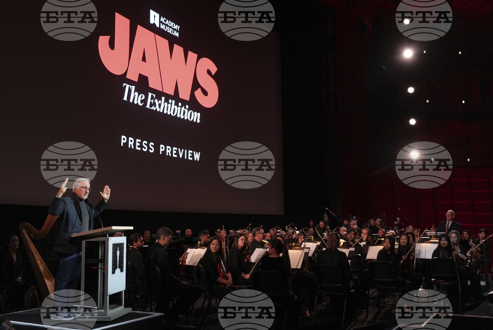 Guests arrive for the "Jaws: The Exhibition" press preview on Wednesday, Sept. 10, 2025, at the Academy Museum of Motion Pictures in Los Angeles. (AP Photo/Chris Pizzello)