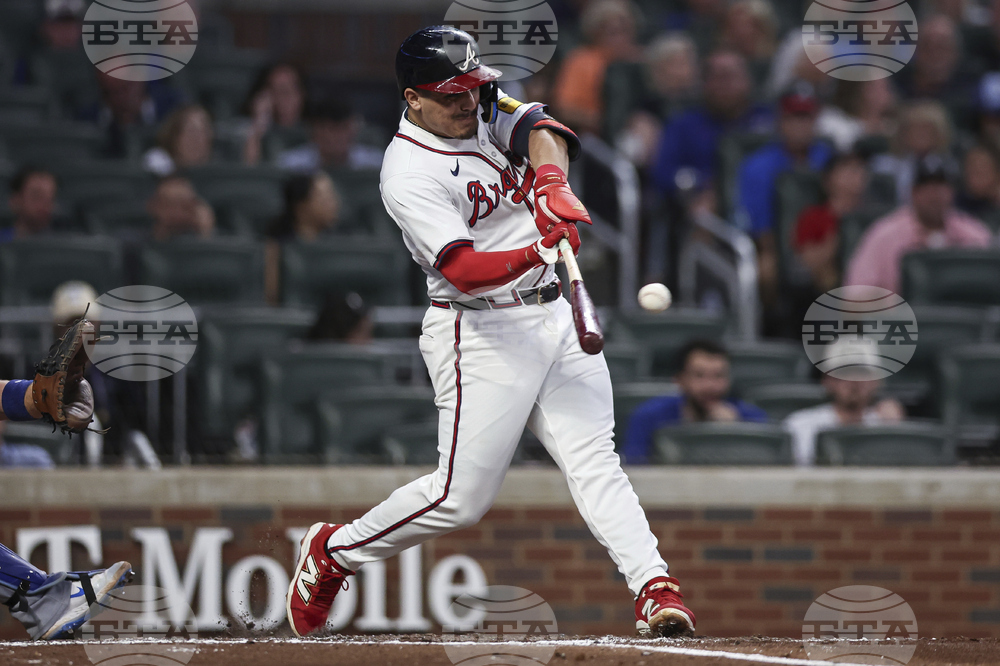 Atlanta Braves' Nacho Alvarez Jr. drives in a run with an RBI double in the third inning of a baseball game against the Chicago Cubs, Wednesday, Sept. 10, 2025, in Atlanta. (AP Photo/Colin Hubbard)