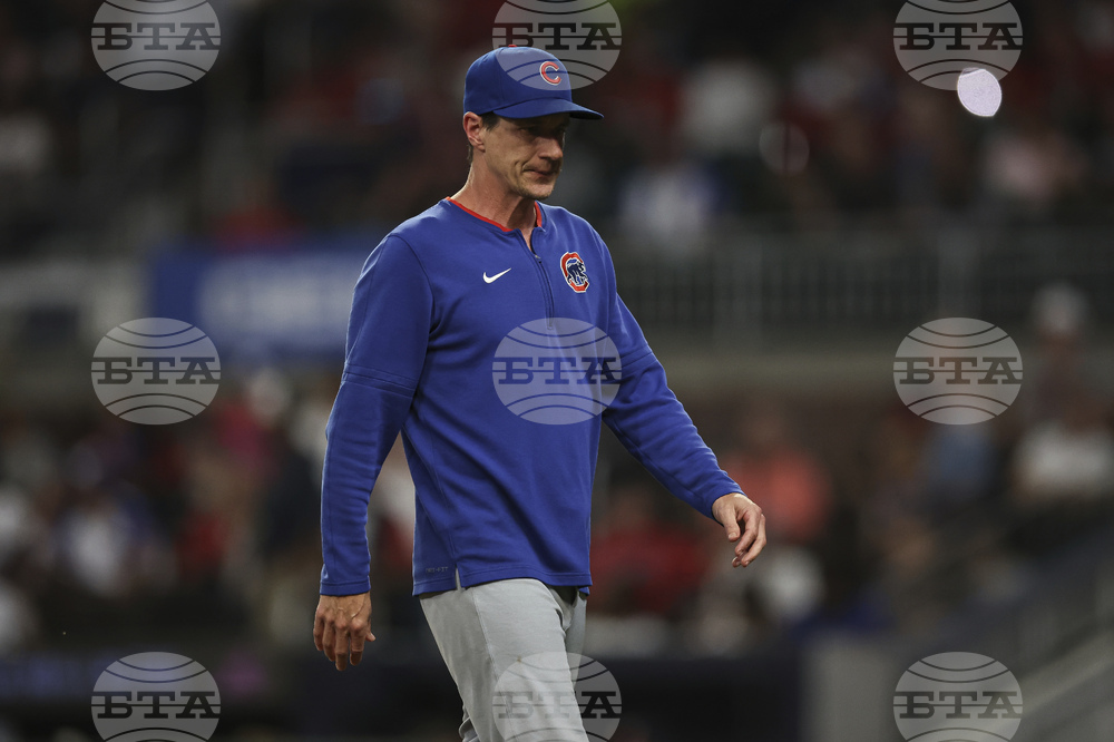 Chicago Cubs manager Craig Counsell walks back to the dugout after making a pitching change in the sixth inning of a baseball game against the Atlanta Braves, Wednesday, Sept. 10, 2025, in Atlanta. (AP Photo/Colin Hubbard)