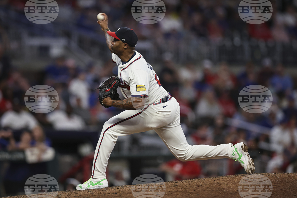 Atlanta Braves pitcher Tyler Kinley delivers in the seventh inning of a baseball game against the Chicago Cubs, Wednesday, Sept. 10, 2025, in Atlanta. (AP Photo/Colin Hubbard)