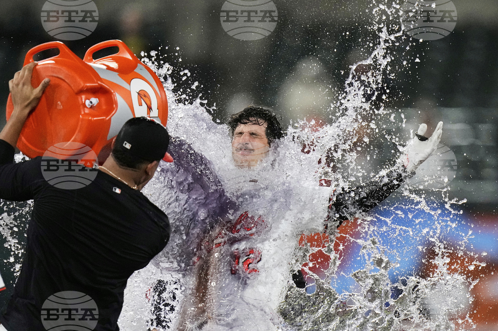 Baltimore Orioles' Dylan Beavers (12) is doused after hitting a walk-off single during the 10th inning of a baseball game against the Pittsburgh Pirates, Wednesday, Sept. 10, 2025, in Baltimore. (AP Photo/Stephanie Scarbrough)