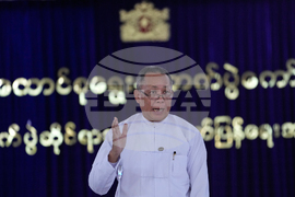 Myint Thein, a member of the Union Election Commission, speaks to journalists during a press conference at the Union Election Commission (UEC) in Naypyitaw, Myanmar, Thursday, Sept. 11, 2025. (AP Photo/Aung Shine Oo)