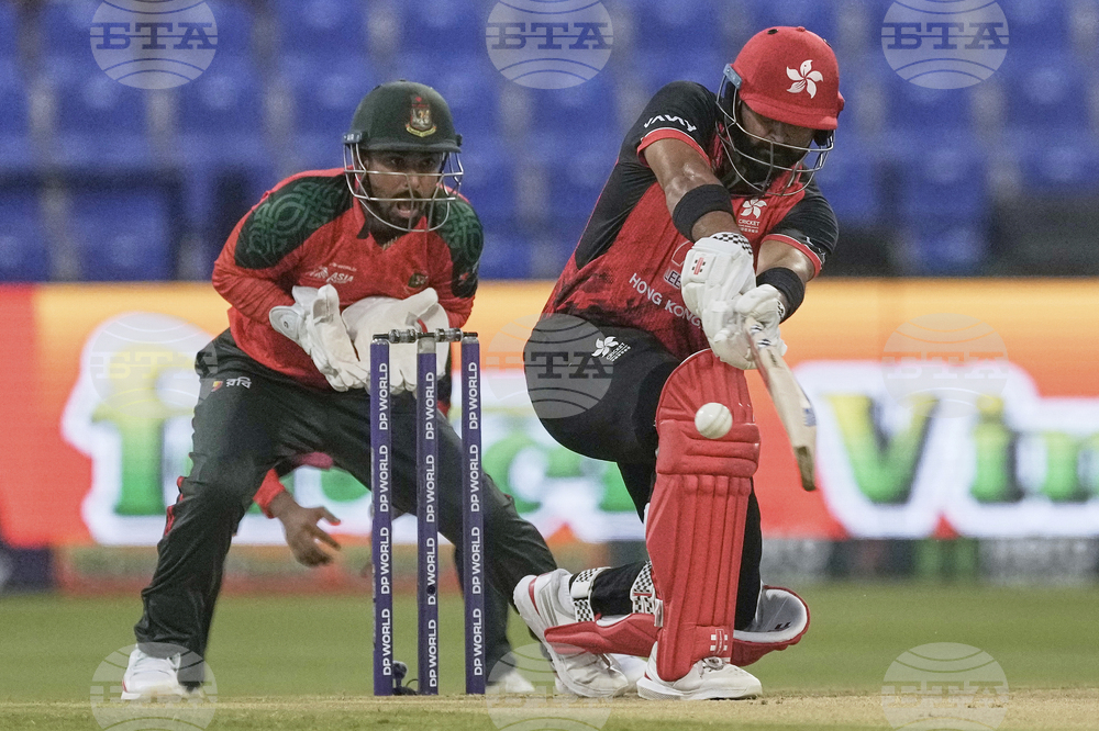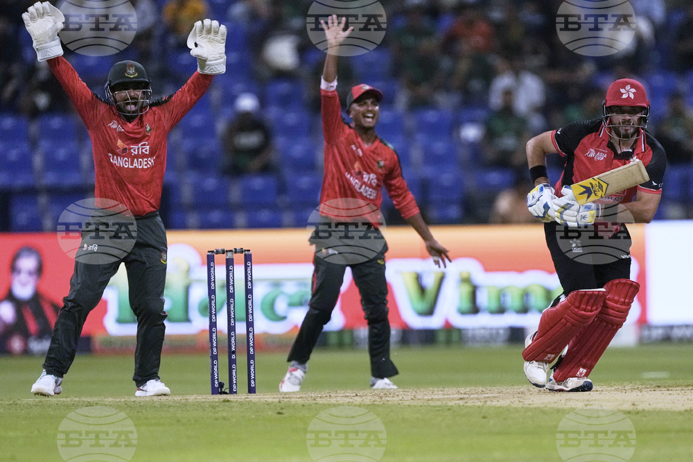 Bangladesh's players appeal unsuccessfully as Hong Kong's Yasim Murtaza plays a shot during the Asia Cup Cricket match between Bangladesh and Hong Kong at Zayed Cricket Stadium in Abu Dhabi, United Arab Emirates, Thursday, Sept. 11, 2025. (AP Photo/Fatima Shbair)
