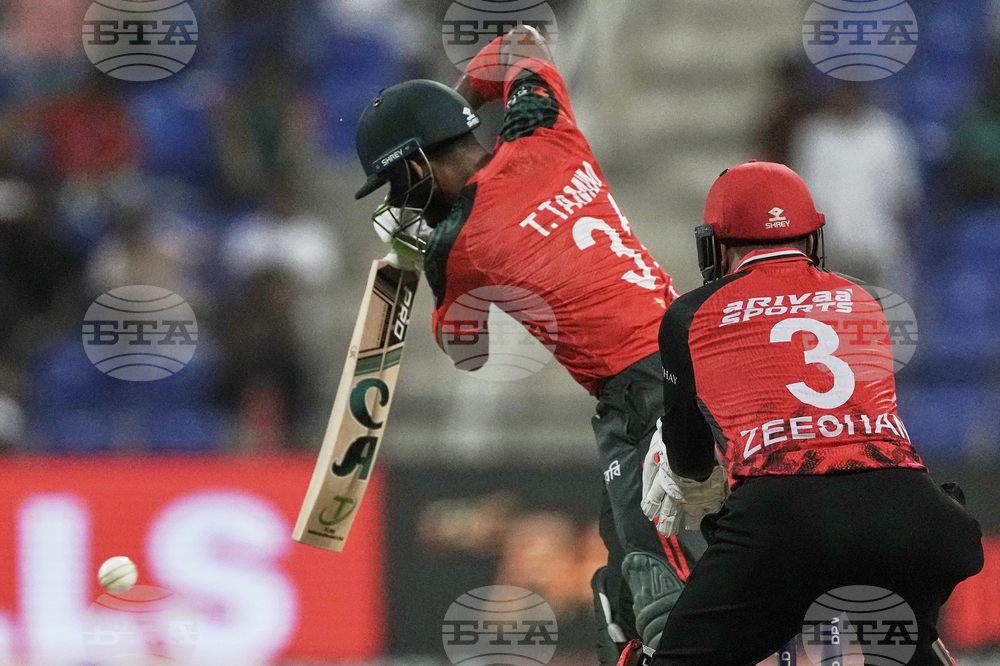 Bangladesh's Tanzim Hasan Sakib bowls a delivery during the Asia Cup Cricket match between Bangladesh and Hong Kong at Zayed Cricket Stadium in Abu Dhabi, United Arab Emirates, Thursday, Sept. 11, 2025. (AP Photo/Fatima Shbair)
