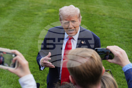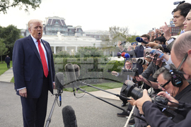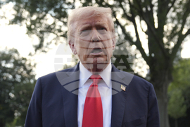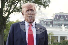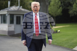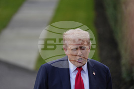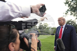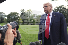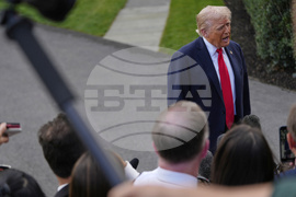 President Donald Trump walks to speak with reporters on the South Lawn as he departs the White House, Thursday, Sept. 11, 2025, in Washington. (AP Photo/Julia Demaree Nikhinson)