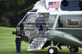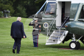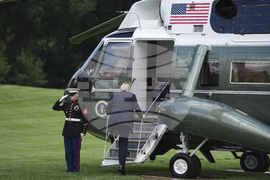 President Donald Trump boards Marine One on the South Lawn of the White House, Thursday, Sept. 11, 2025, in Washington. (AP Photo/Evan Vucci)