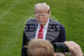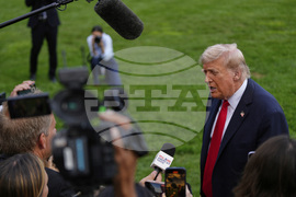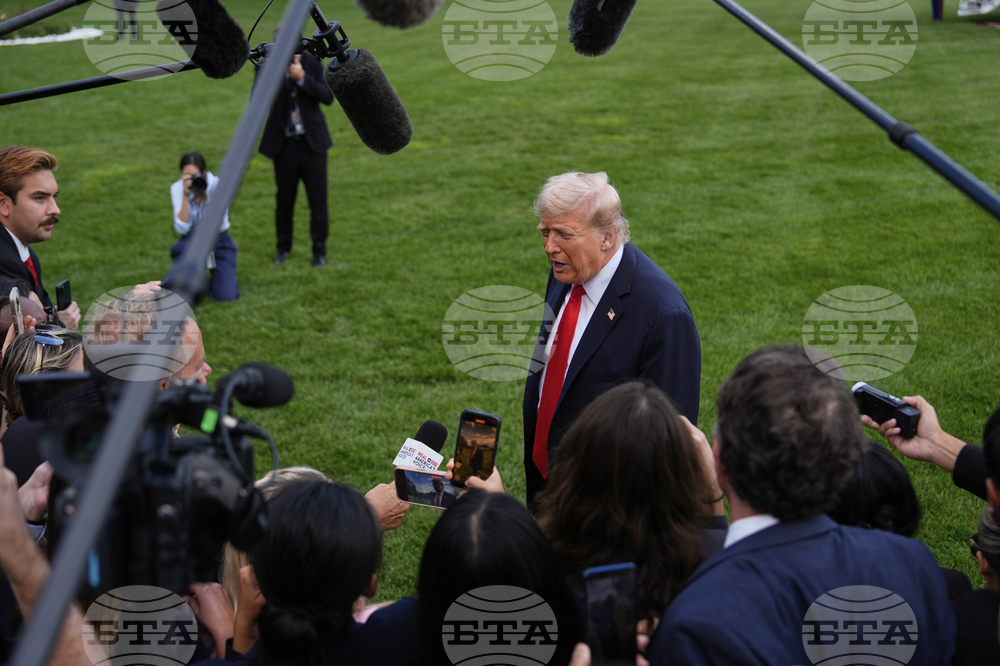 President Donald Trump speaks with reporters before boarding Marine One on the South Lawn of the White House, Thursday, Sept. 11, 2025, in Washington. (AP Photo/Evan Vucci)