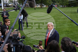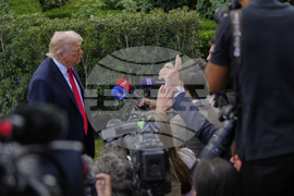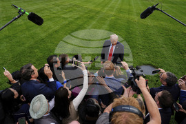 President Donald Trump speaks with reporters on the South Lawn as he departs the White House, Thursday, Sept. 11, 2025, in Washington. (AP Photo/Julia Demaree Nikhinson)