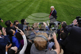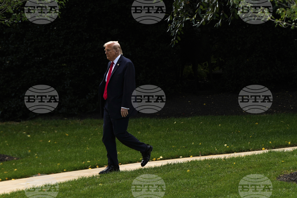 President Donald Trump walks to speaks with reporters before boarding Marine One on the South Lawn of the White House, Thursday, Sept. 11, 2025, in Washington. (AP Photo/Evan Vucci)