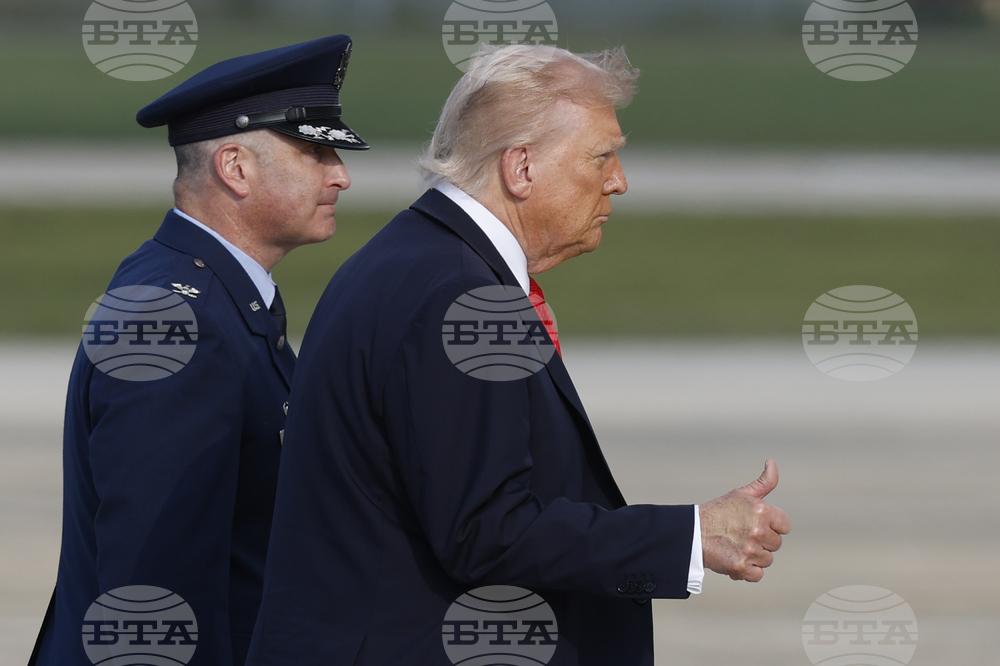President Donald Trump, left, is escorted by Air Force Col. Christopher M. Robinson, Commander, 89th Airlift Wing, as he walks from Marine One to Air Force One, at Joint Base Andrews, Md., Thursday, Sept. 11, 2025. (AP Photo/Luis M. Alvarez)