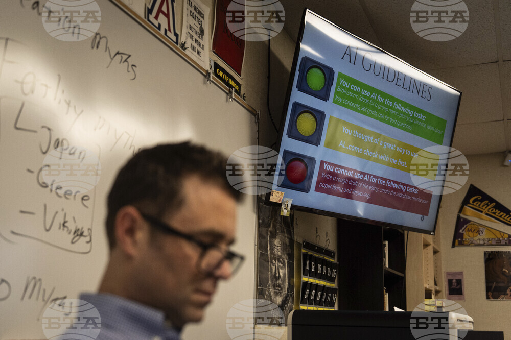 A computer screen in English teacher Casey Cuny's classroom shows ChatGPT during class at Valencia High School in Santa Clarita, Calif., Wednesday, Aug. 27, 2025. (AP Photo/Jae C. Hong)