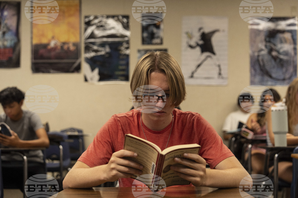 Timothy Rimke reads during Casey Cuny's English class at Valencia High School in Santa Clarita, Calif., Wednesday, Aug. 27, 2025. (AP Photo/Jae C. Hong)