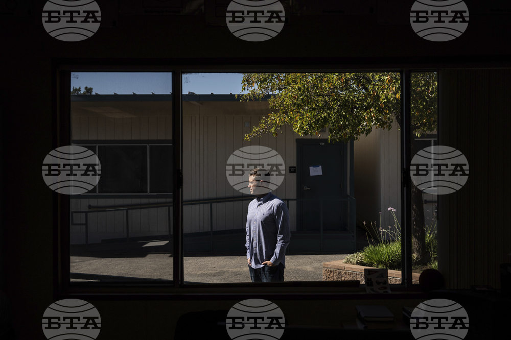 Casey Cuny, an English teacher at Valencia High School, poses for a photo outside his classroom in Santa Clarita, Calif., Wednesday, Aug. 27, 2025. (AP Photo/Jae C. Hong)