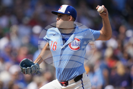 Chicago Cubs starting pitcher Matthew Boyd (16) throws agains the Tampa Bay Rays during the first inning of a baseball game, Friday, Sept. 12, 2025, in Chicago. (AP Photo/Erin Hooley)