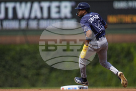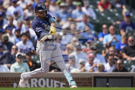 Tampa Bay Rays designated hitter Christopher Morel (24) runs the bases after hitting a three-run home run during the first inning of a baseball game against the Chicago Cubs, Friday, Sept. 12, 2025, in Chicago. (AP Photo/Erin Hooley)