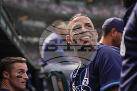 Tampa Bay Rays designated hitter Christopher Morel (24) stands in the dugout during the fourth inning of a baseball game against the Chicago Cubs, Friday, Sept. 12, 2025, in Chicago. (AP Photo/Erin Hooley)