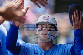 Chicago Cubs' Nico Hoerner (2) scores on a triple by designated hitter Moisés Ballesteros during the third inning of a baseball game against the Tampa Bay Rays, Friday, Sept. 12, 2025, in Chicago. (AP Photo/Erin Hooley)