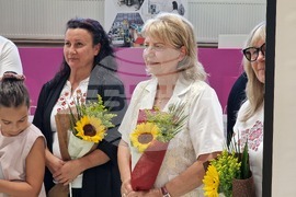 Стара Загора (13 септември 2025) Над 400 участници от 22 отбора участват на XXII турнир по художествена гимнастика "Импала къп", който се провежда в Стара Загора. На снимката: главен съдия на турнира Валя Маркова (вляво) и председател и главен треньор на клуб "Импала" Стара Загора Петя Петкова.