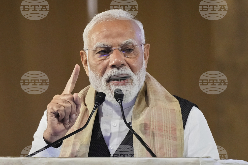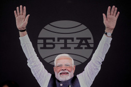 Indian Prime Minister Narendra Modi gestures to his supporters during a public rally at Mangaldoi, north of Guwahati, India, Sunday, Sept. 14, 2025. (AP Photo/Anupam Nath)