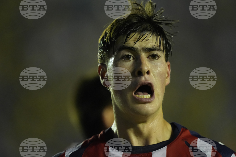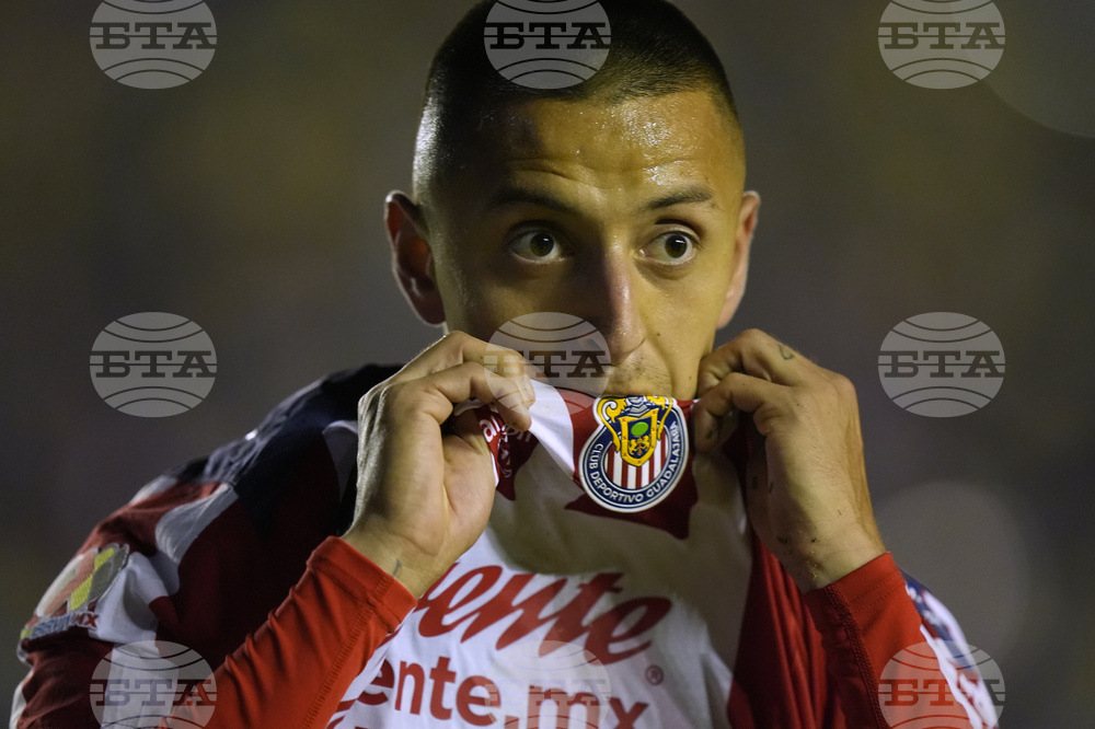 Roberto Alvarado of Guadalajara celebrates after scoring the opening goal against America during a Mexican league soccer match in Mexico City, Saturday, Sept. 13, 2025. (AP Photo/Fernando Llano)