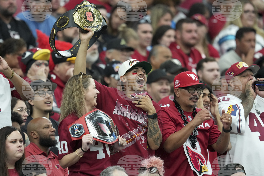 Arizona Cardinals fans cheer during the first half of an NFL football game against the Carolina Panthers, Sunday, Sept. 14, 2025, in Glendale, Ariz. (AP Photo/Ross D. Franklin)