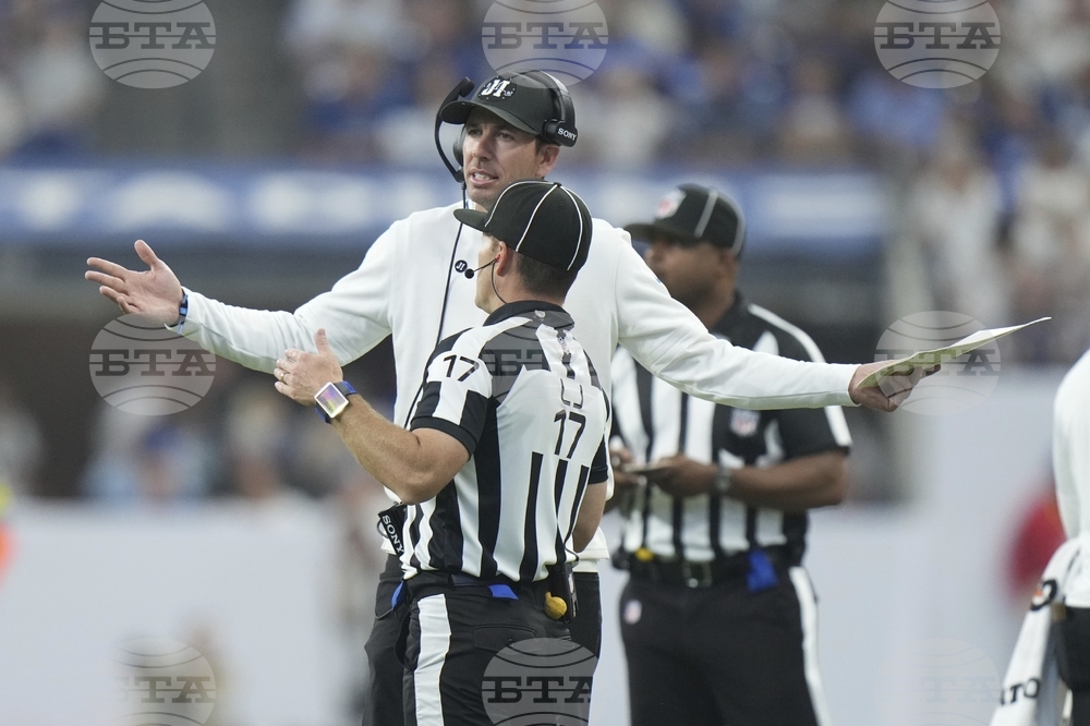 Indianapolis Colts head coach Shane Steichen argues a call during the first half an NFL football game against the Denver Broncos, Sunday, Sept. 14, 2025, in Indianapolis. (AP Photo/AJ Mast)