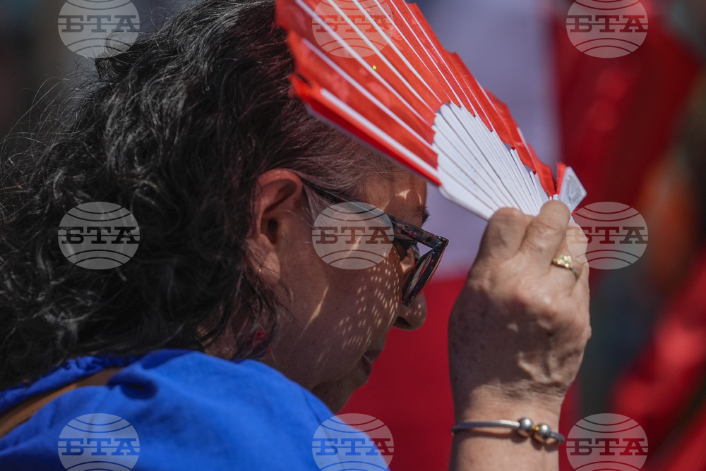 Andrea Anaya shades her face with a fan as she watches the Mexican Independence Day Parade, Sunday, Sept. 14, 2025, in the Little Village neighborhood of Chicago. (AP Photo/Erin Hooley)