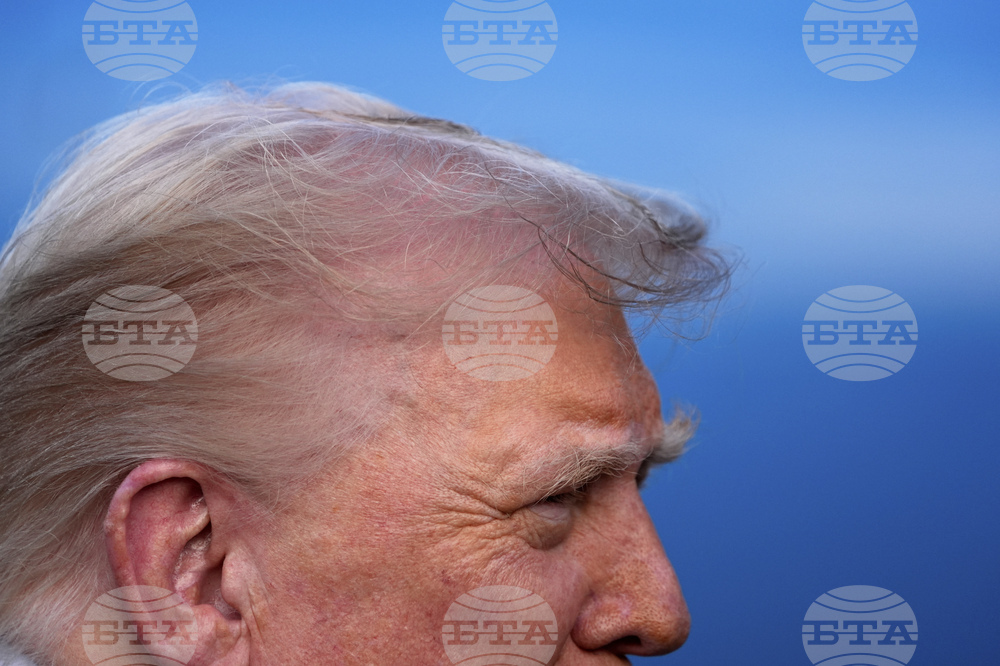 President Donald Trump speaks with reporters before boarding Air Force One at Morristown Airport, Sunday, Sept. 14, 2025, in Morristown, N.J. (AP Photo/Alex Brandon)