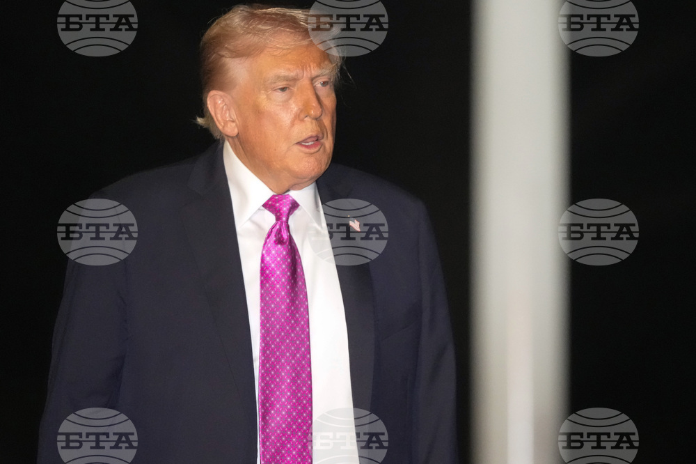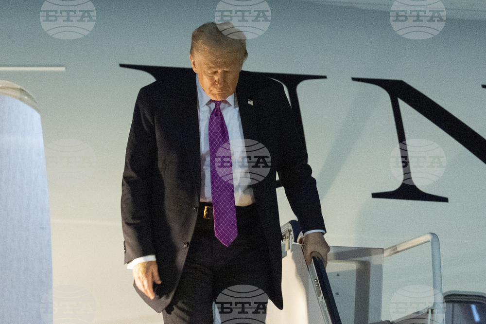 President Donald Trump arrives at Joint Base Andrews, Md., on Air Force One, Sunday, Sept. 14, 2025. (AP Photo/Manuel Balce Ceneta)