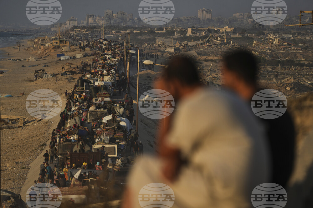 Displaced Palestinians flee northern Gaza along the coastal road toward the south, after Israel's military says its expanded operation in Gaza City has begun and warns residents to leave, Tuesday, Sept. 16, 2025. (AP Photo/Abdel Kareem Hana)