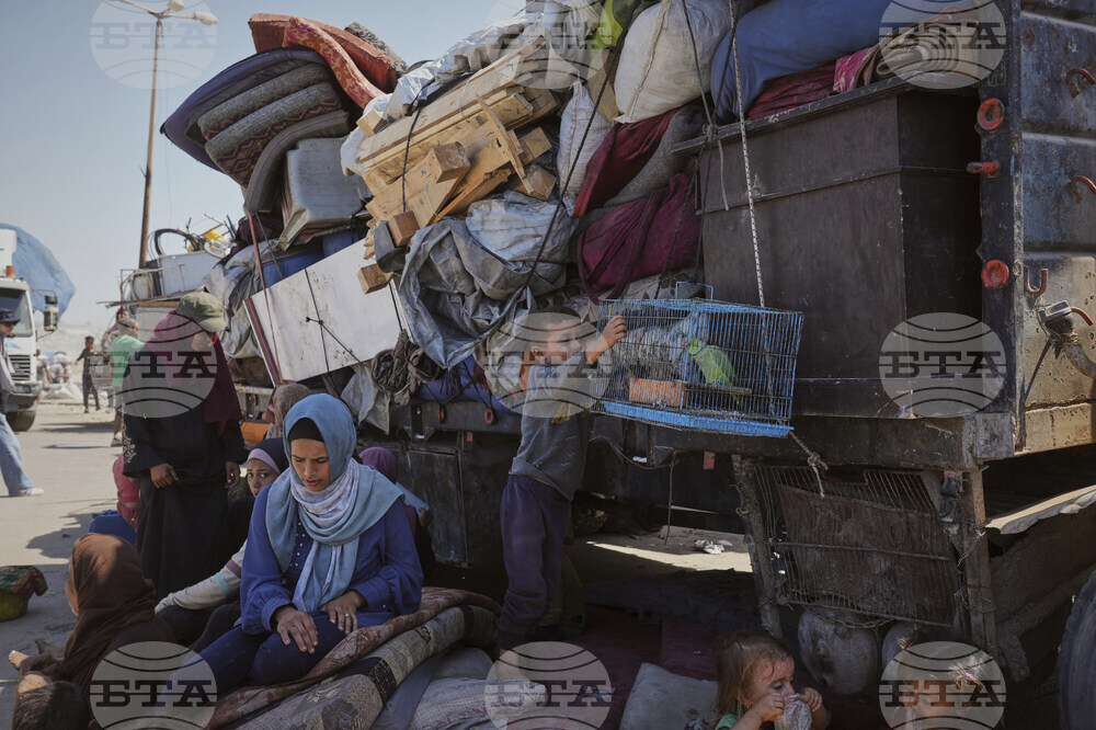 Displaced Palestinians flee northern Gaza by foot and in vehicles, carrying their belongings along the coastal road toward southern Gaza, Monday, Sept. 15, 2025. (AP Photo/Abdel Kareem Hana)