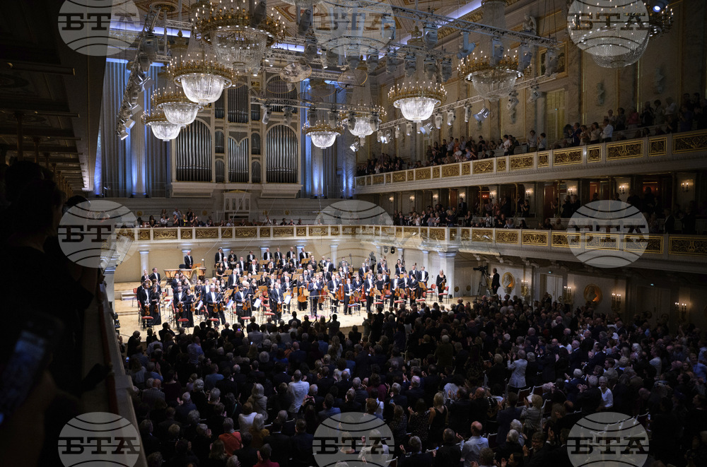 Israeli conductor Lahav Shani acknowledges the applause of the audience at the Musikfest Berlin at the Konzerthaus in Berlin, Monday, Sept. 15, 2025. (Bernd von Jutrczenka/dpa via AP)