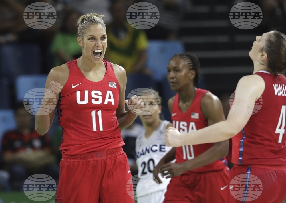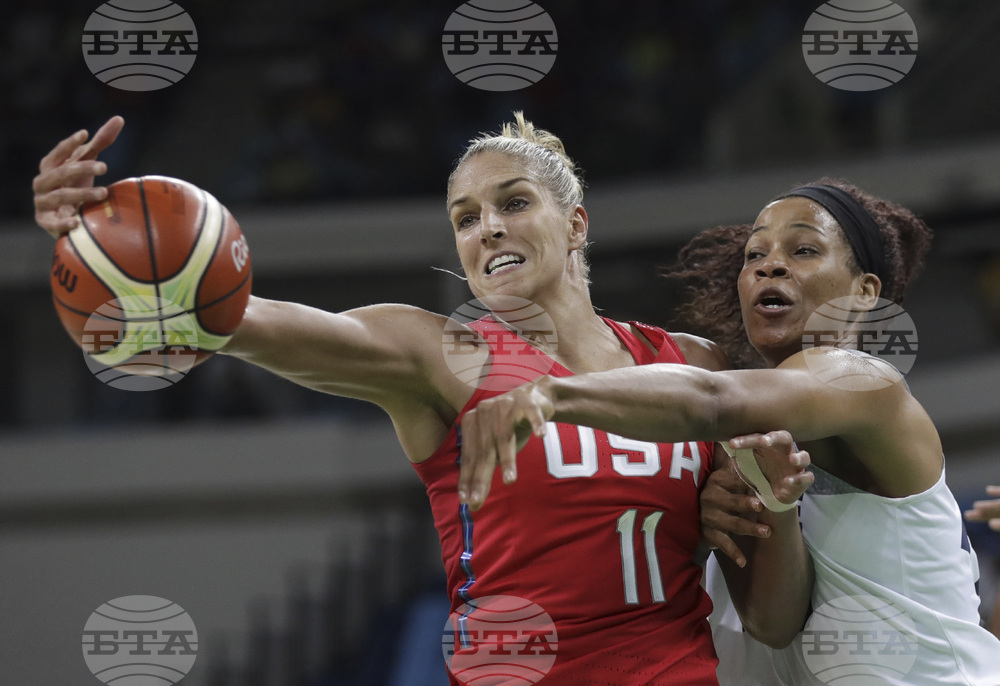 File - This Aug. 18, 2016, file photo shows United States' Elena Delle Donne (11) and France's Marielle Amant, right, reaching out for the ball during a women's semifinal round basketball game at the 2016 Summer Olympics in Rio de Janeiro, Brazil. (AP Photo/Eric Gay, File)