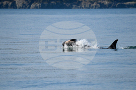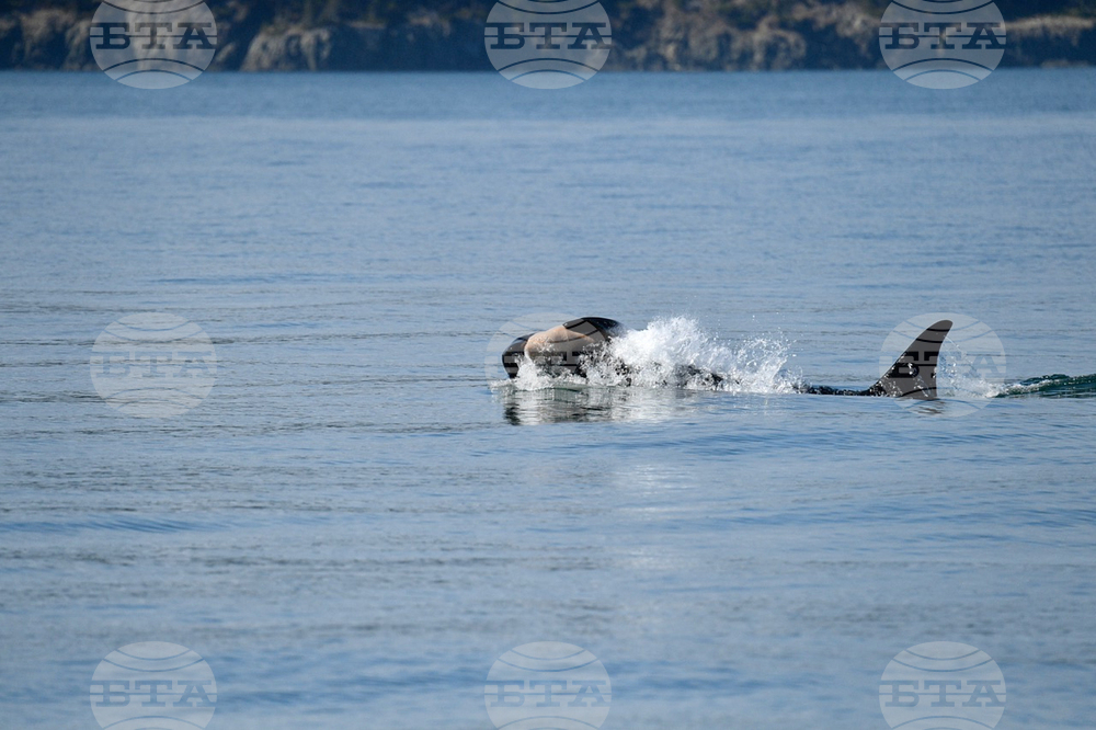 In this image released by the SeaDoc Society/San Diego Zoo Wildlife Alliance, an orca whale known as J36 is seen propping up the body of her dead calf in the waters of Rosario Strait near Orcas Island, Washington, on Friday, Sept. 12, 2025. (SeaDoc Society/San Diego Zoo Wildlife Alliance via AP)