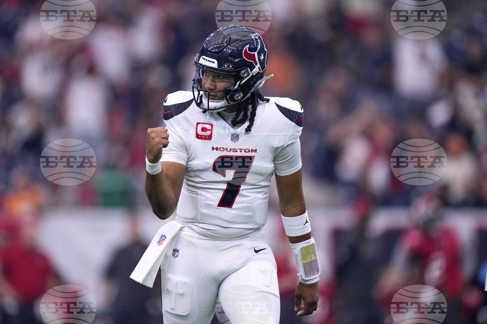 Houston Texans quarterback C.J. Stroud throws a pass in the first half of an NFL football game against the Tampa Bay Buccaneers Monday, Sept. 15, 2025, in Houston, Texas. (AP Photo/Eric Christian Smith)