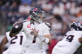 Houston Texans quarterback C.J. Stroud prepares to throw a pass in the first half of an NFL football game against the Tampa Bay Buccaneers Monday, Sept. 15, 2025, in Houston, Texas. (AP Photo/Eric Christian Smith)