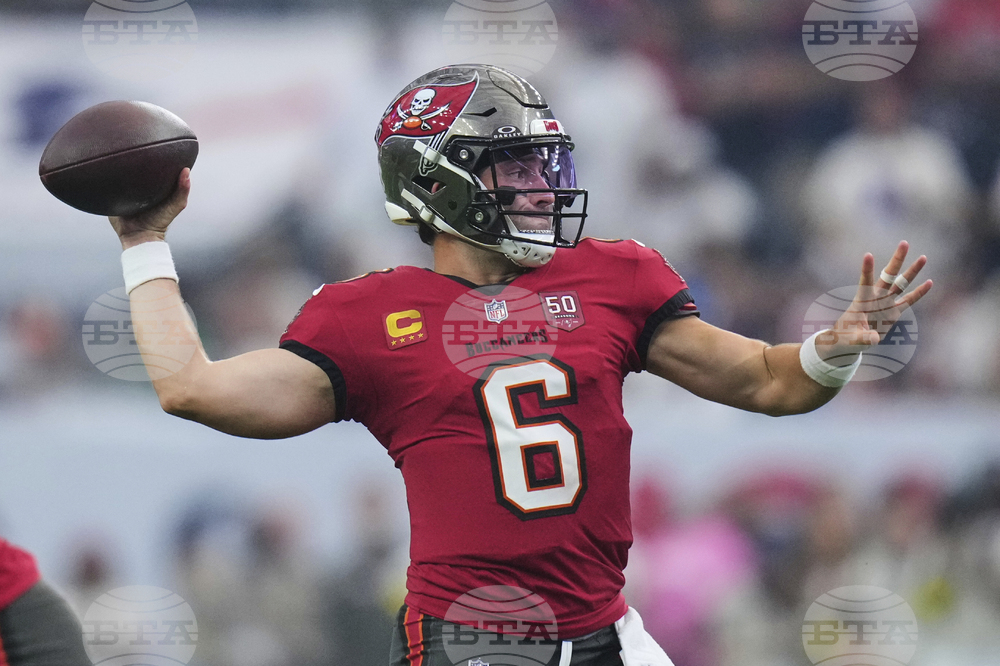 Tampa Bay Buccaneers quarterback Baker Mayfield (6) throws a pass in the first half of an NFL football game against the Houston Texans Monday, Sept. 15, 2025, in Houston, Texas. (AP Photo/Eric Gay)