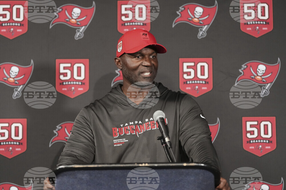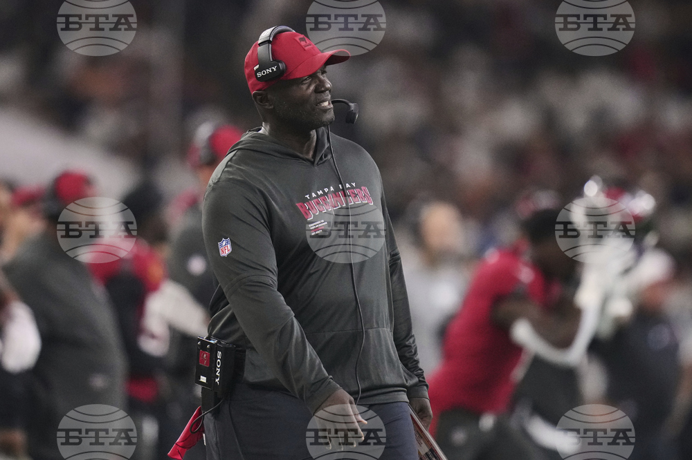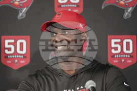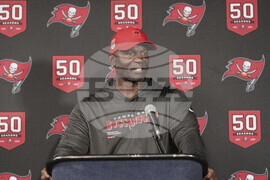 Tampa Bay Buccaneers head coach Todd Bowles responds to questions during a news conference after the team's NFL football game against the Houston Texans Monday, Sept. 15, 2025, in Houston, Texas. (AP Photo/Eric Gay)