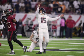 Houston Texans place kicker Ka'imi Fairbairn (15) kicks a field goal in the second half of an NFL football game against the Tampa Bay Buccaneers Monday, Sept. 15, 2025, in Houston, Texas. (AP Photo/Eric Christian Smith)