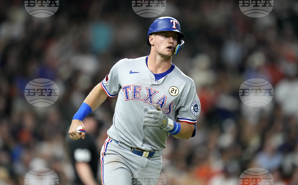 Texas Rangers' Josh Jung runs the bases after hitting a two-run home run off Houston Astros starting pitcher Jason Alexander during the fifth inning of a baseball game Monday, Sept. 15, 2025, in Houston. (AP Photo/Karen Warren)