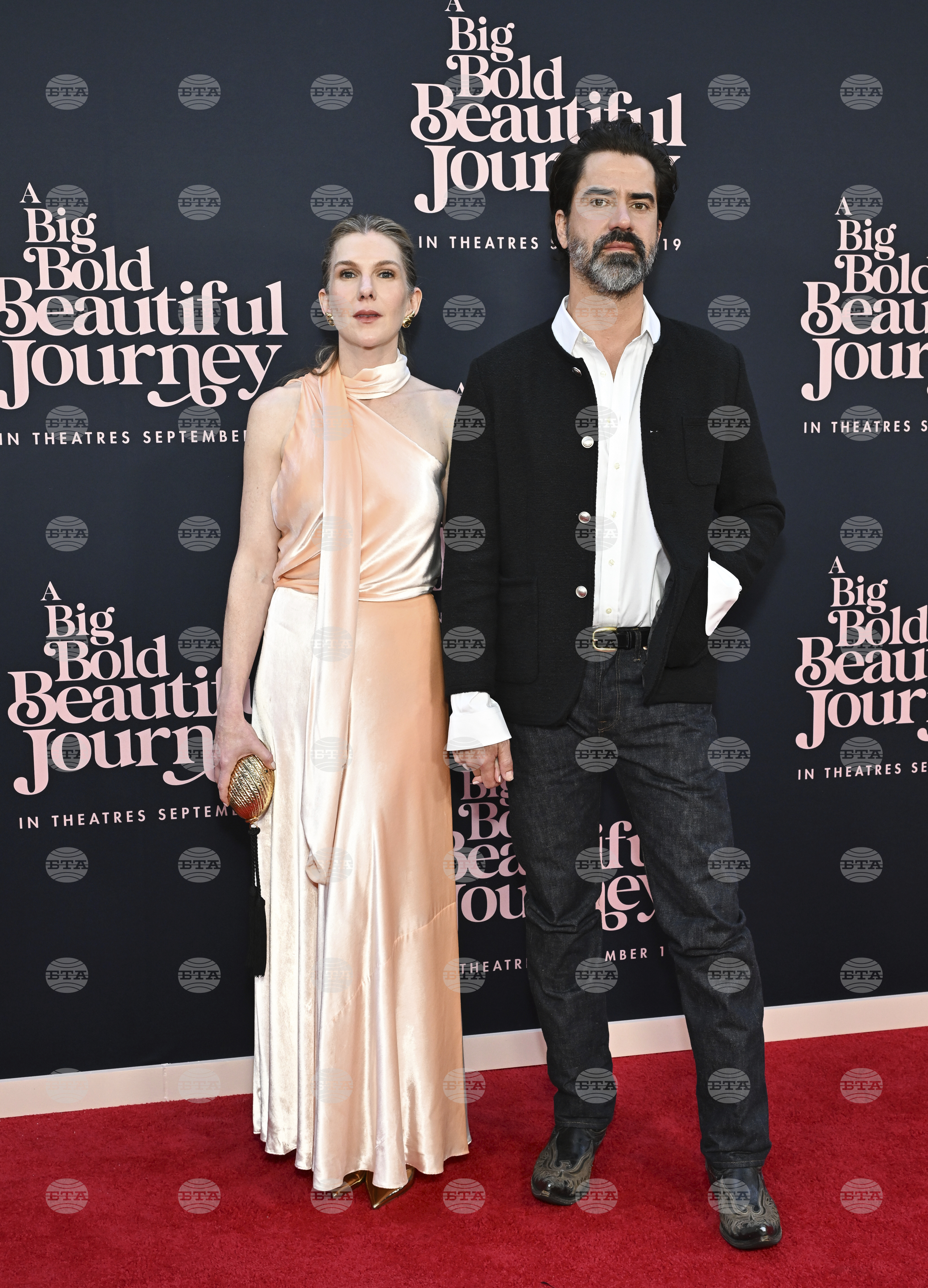 Lily Rabe, left, and Hamish Linklater attend the Sony Pictures premiere of "A Big Bold Beautiful Journey" at AMC Lincoln Square on Monday, Sept. 15, 2025, in New York. (Photo by Evan Agostini/Invision/AP)