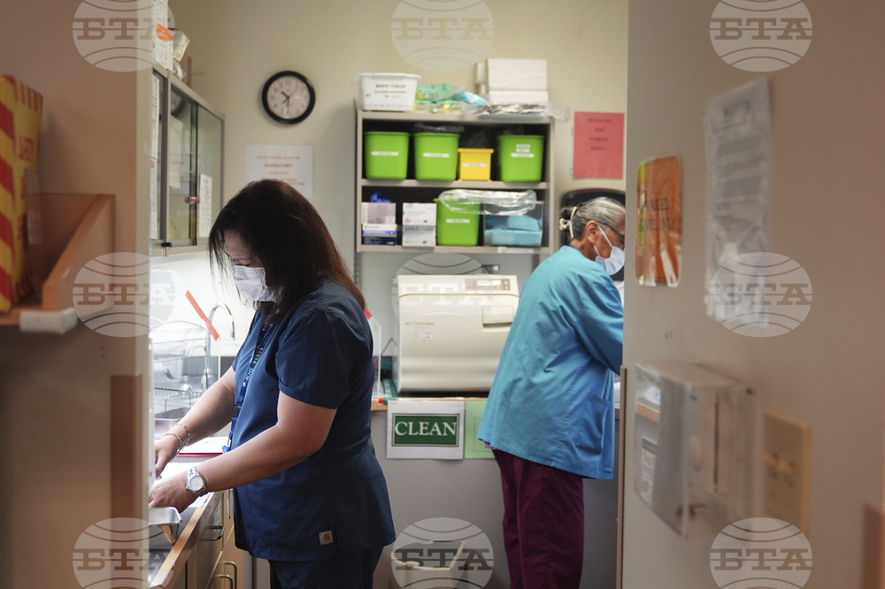 Lead medical assistant Maria Teresa Diocales, left, prepares vaccines for a young patient as medical assistant Pusi Sa'au, right, works nearby at International Community Health Services, Wednesday, Sept. 10, 2025, in Seattle. (AP Photo/Lindsey Wasson)