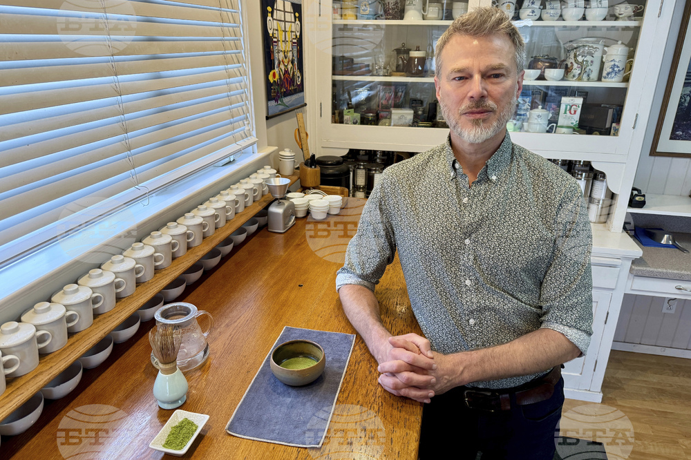 Senior Tea Buyer Aaron Vick uses a whisk to make a matcha drink inside The G.S. Haly Company's tea tasting room in Redwood City, Calif., Wednesday, Sept. 10, 2025. (AP Photo/Haven Daley)