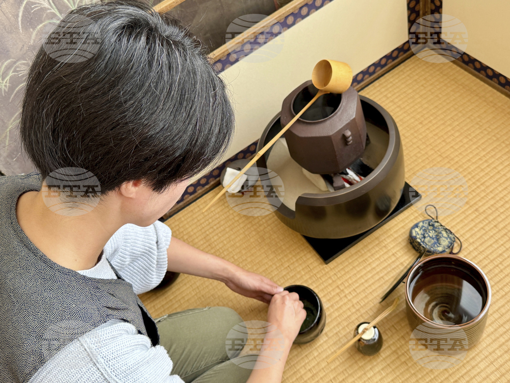 Anri Frank, practices making matcha during a traditional Japanese tea service class, Monday, Sept. 8, 2025, in San Francisco. (AP Photo/Haven Daley)