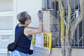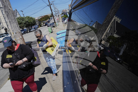 Lori Milburn leaves a flyer asking voters to recall Supervisor Joel Engardio at a residence in the Sunset District, Monday, Sept. 15, 2025, in San Francisco. (AP Photo/Godofredo A. Vásquez)