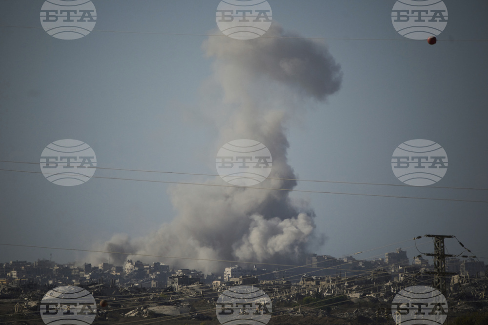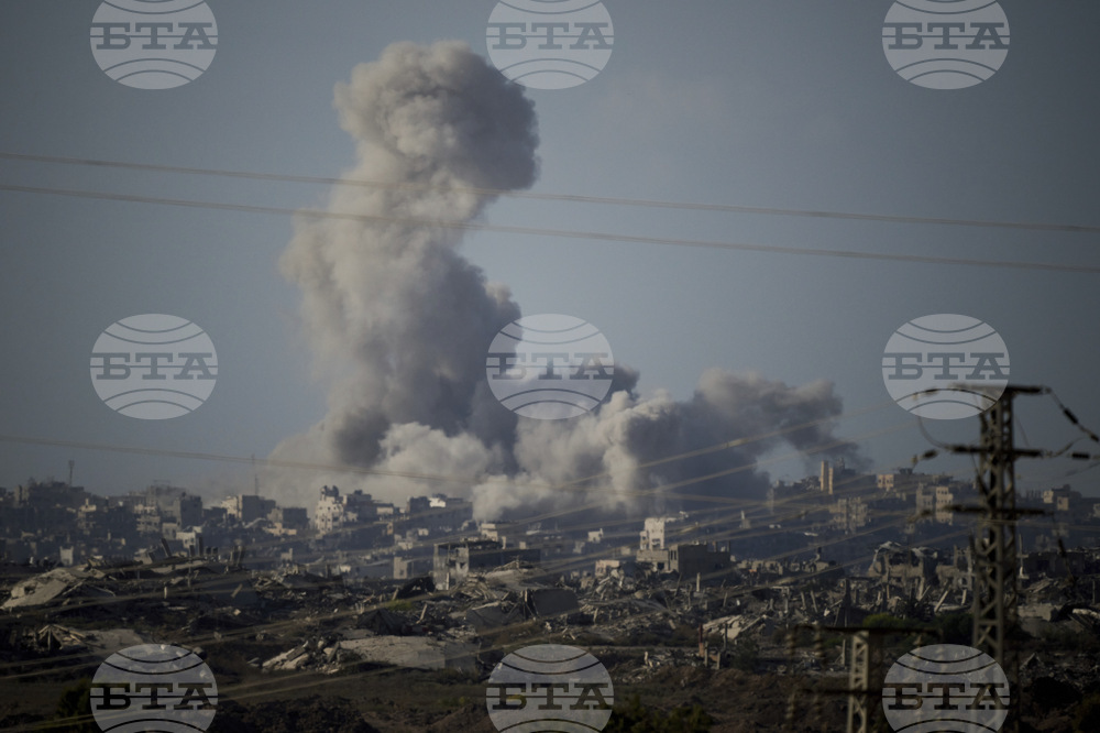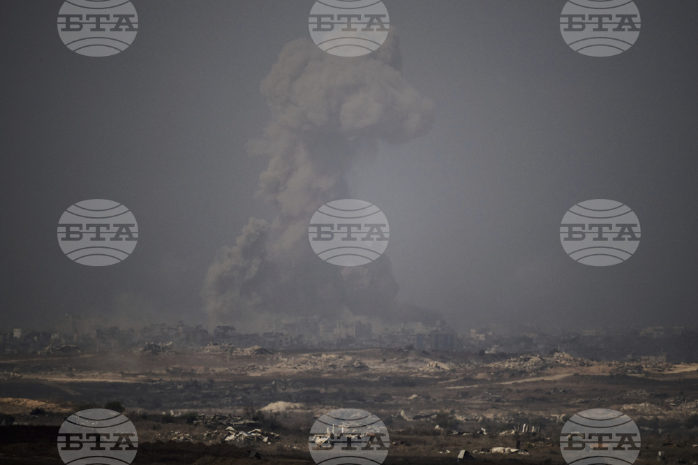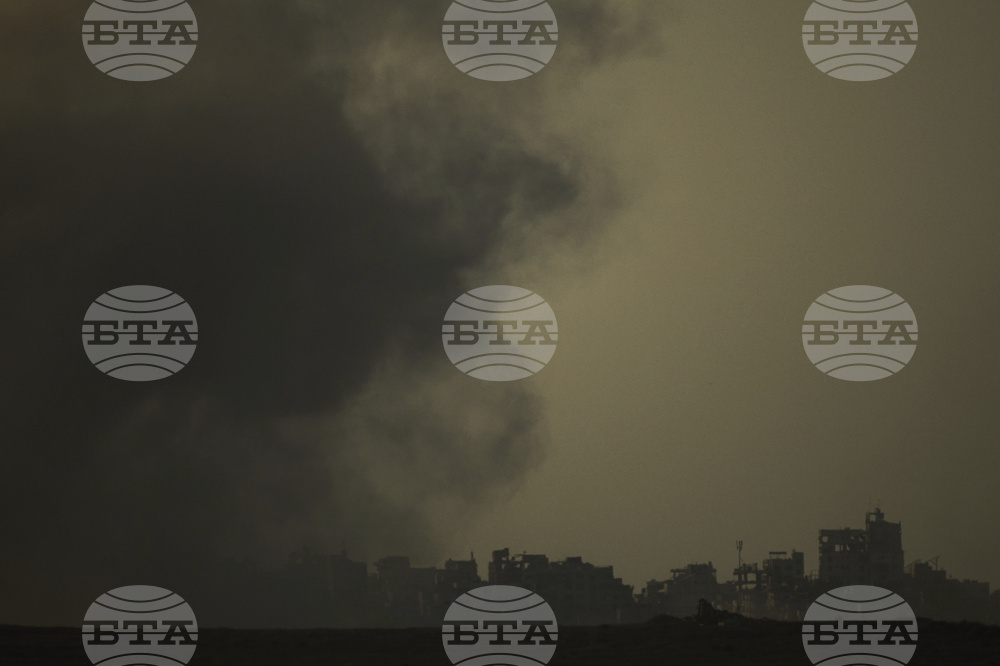 Smokes rise to the sky following an Israeli military strike in the Gaza Strip, as seen from southern Israel, Tuesday, Sept. 16, 2025. (AP Photo/Leo Correa)